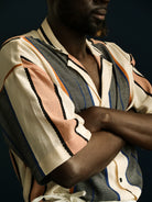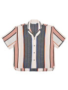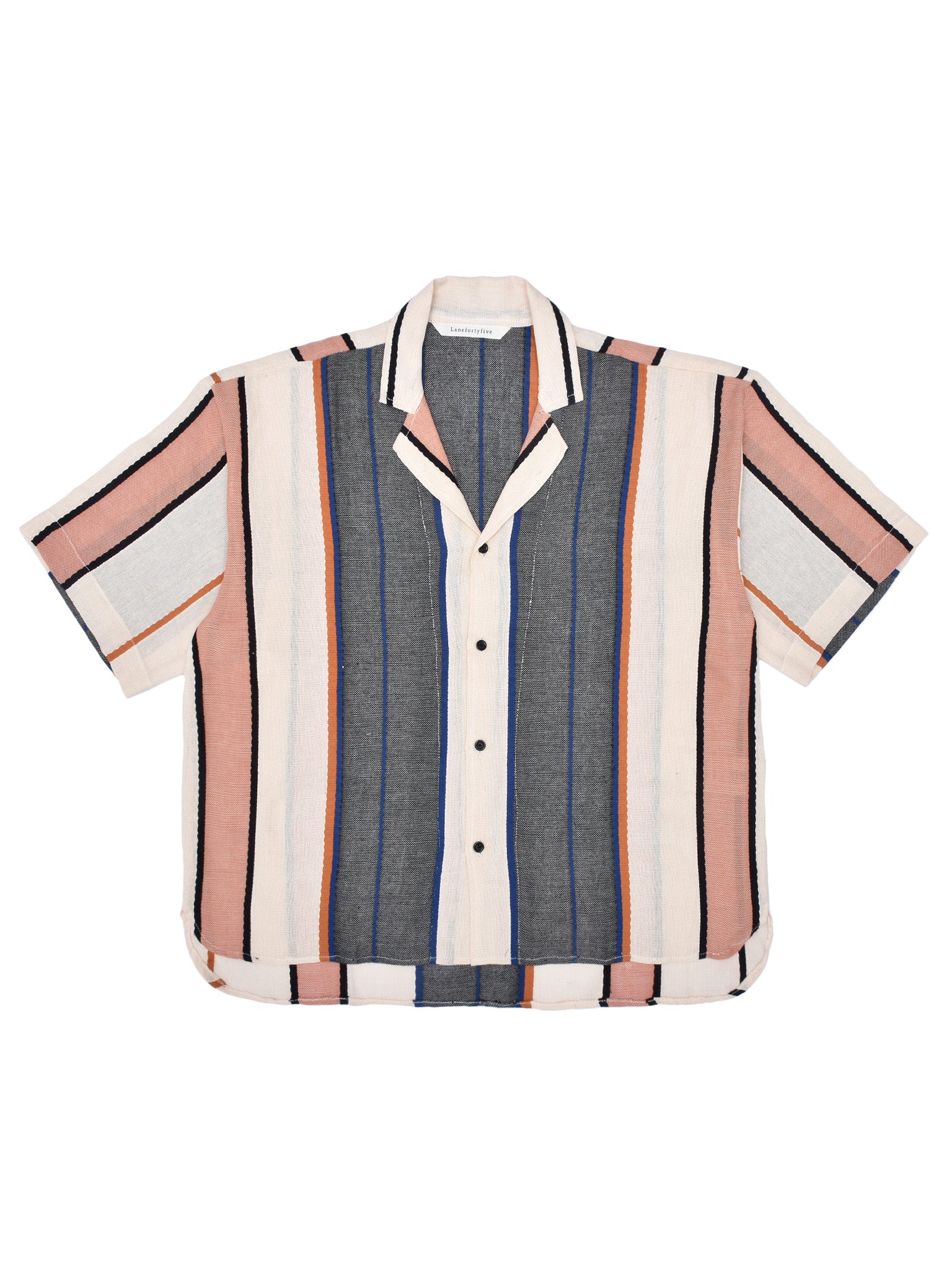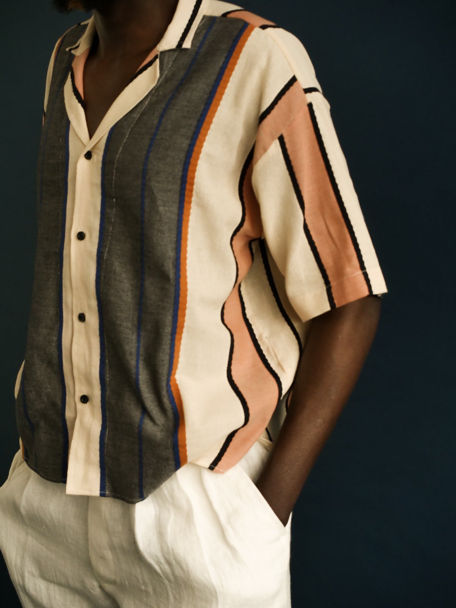 Generous half-sleeved shirt in pure cotton fabrics with four buttoned front, seamless lapel neck and collar, and circular side ends.