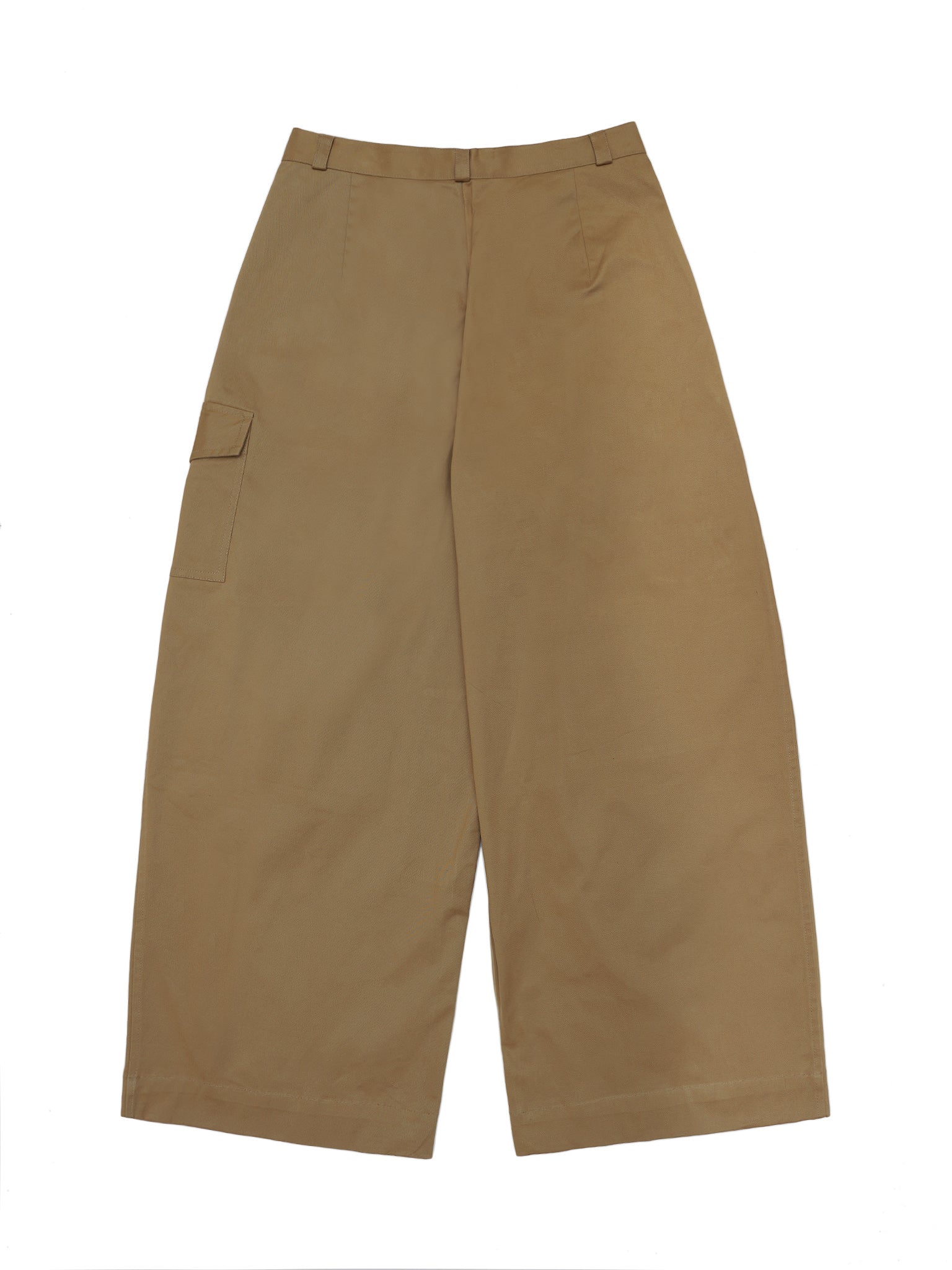 Made in brushed cotton twill for a soft moleskin feel, The Biblioteca trousers is a wide-legged pleated pair of trousers with a contrasting pocket on the thigh and inside leg patch with an embroidered seam stitch.